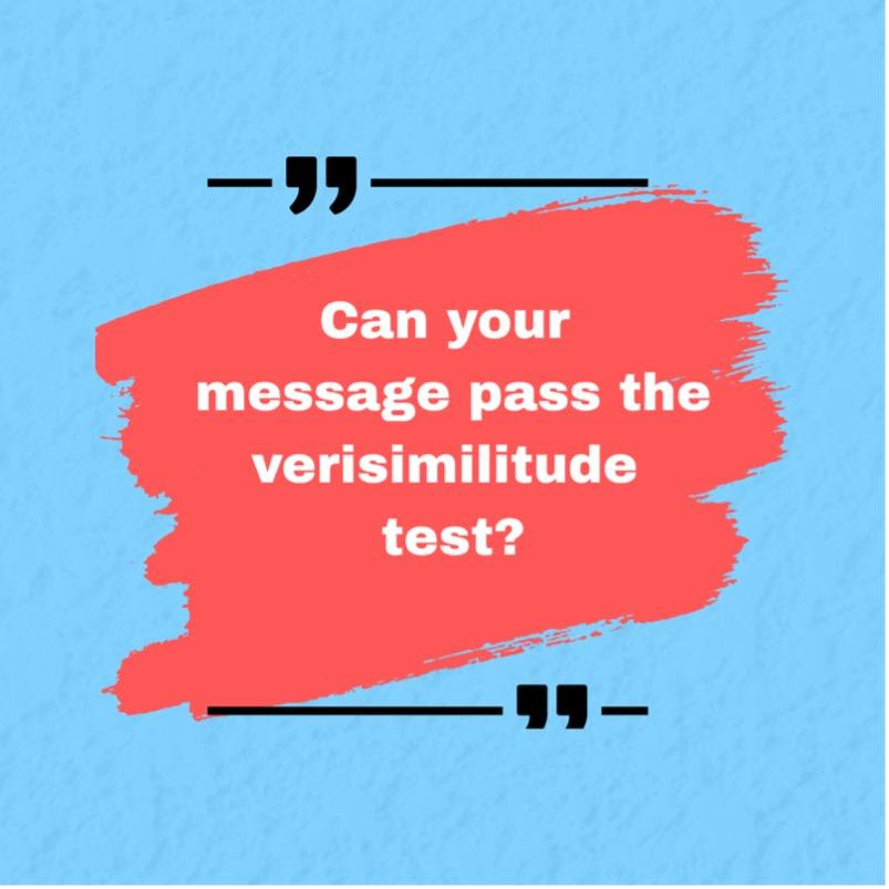 Put it this way: To be effective, your message not only has to be factually correct. It has to sound true to your audience. There’s a great word for that believability test: Verisimilitude