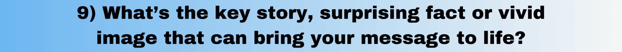 Answering this question may help answer the attention one. Most compelling messages don’t just roll along on an even keel from start to finish. They feature a dramatic high point. That can take the form of a powerful personal story, a vivid “can’t get it out of my head” image or a surprising fact that upends your audience’s sense of the situation.